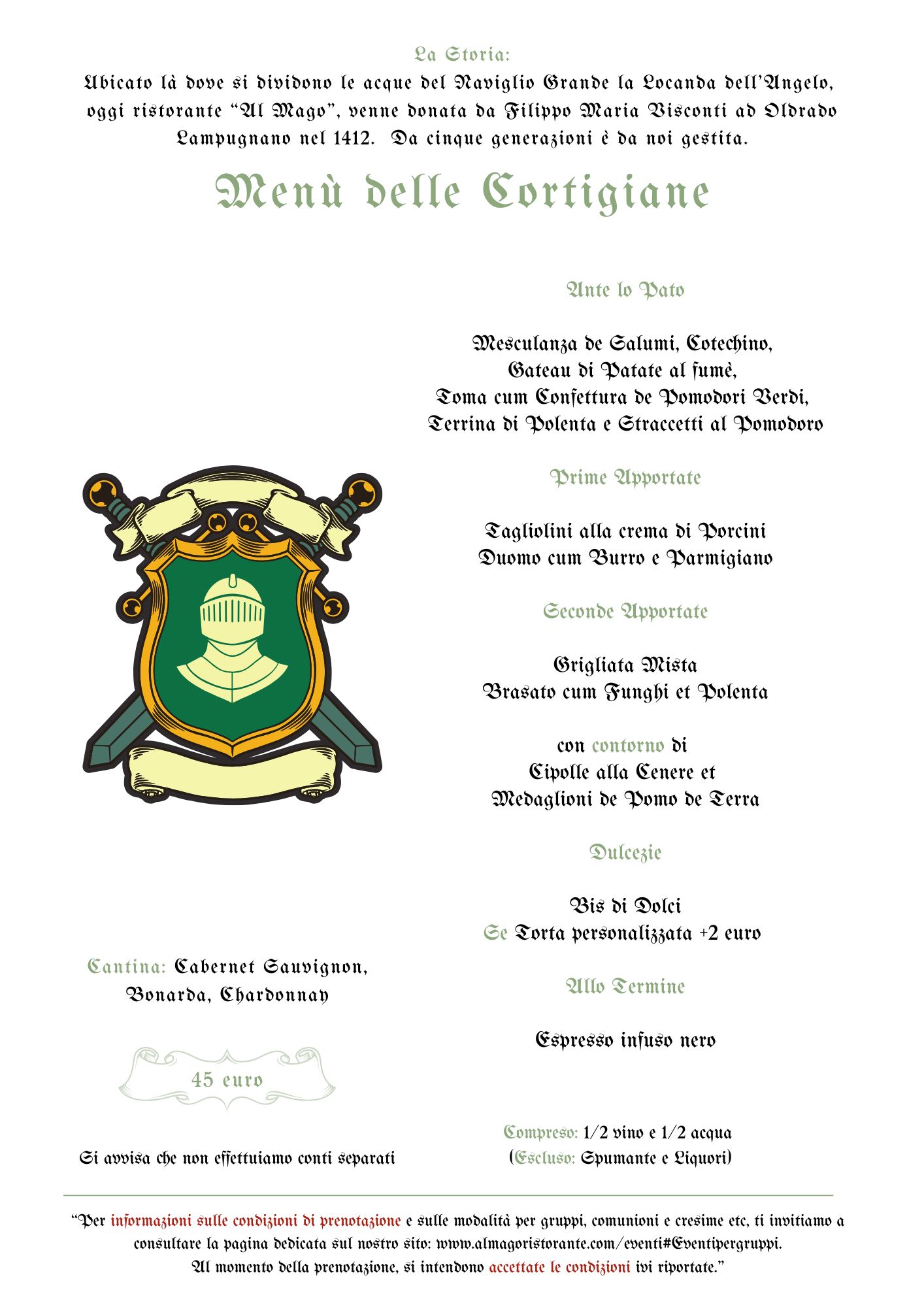 Da qualche anno organizziamo le cene Medioevo in Favola in cui abbiamo unito l’atmosfera medioevale con la falconeria a quella dei Maghi. Durante la vostra cena con menu alla carta potrete partecipare alla rievocazione per immergervi nell’epoca medioevale. Alcune serate prevedono il menu guidato.