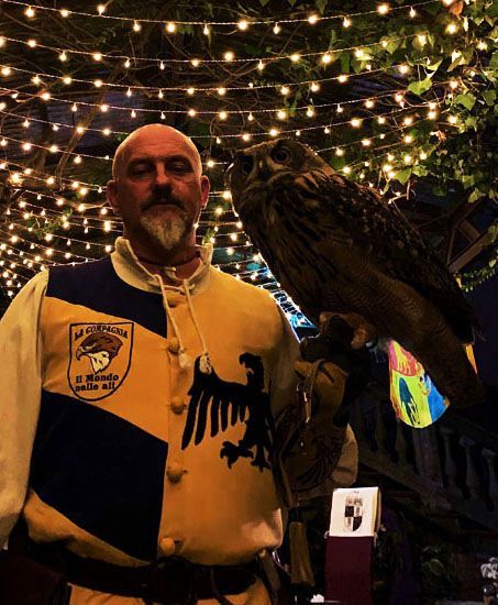 In questo ambiente caratteristico, che riporta magicamente indietro nel tempo, organizziamo da più di trent’anni delle serate medievali con falconieri e giullari di corte. Gli artisti con cui collaboriamo a queste rievocazioni storiche sono Daniele de “Il mondo nelle Ali” e Manuel “Nespolo Lo Giullare”.