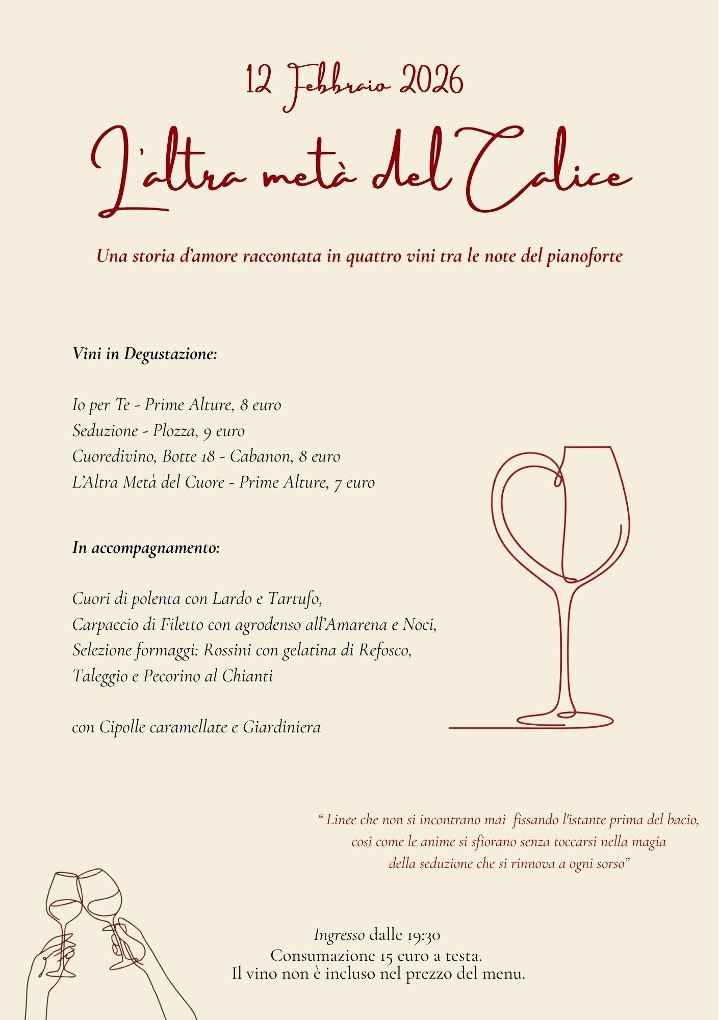 Una serata di degustazione con cui raccontare una storia d'amore con 4 calici in accompagnamento ad assaggi.